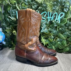 Vtg Nocona Cowboy Boots Mens 10 D Brown Lizard Pointed Toe Made USA Western 9010$150San Diego, CA