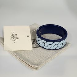 New Hermes Bangle Boquin Fln Lacquered Wood Bracelet Marine Color Size T2$370San Diego, CA
