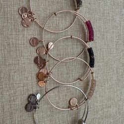 Set Of 5 Alex And Ani Rose Gold Meteor Shower Silver Green Stone Bracelets $50San Diego, CA