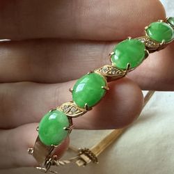 GORGEOUS 18K gold bangle bracelet featuring five oval-shaped, VIBRANT green jade cabochons And Diamonds $2,000San Marcos, CA