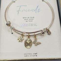 Stainless Steel Cubic Zirconia Bangle Adjustable Bracelet "Friends ". Firm Price $6San Diego, CA