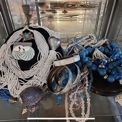 Vtg Estate Jewelry Lot Grandma Necklace bracelet brooch earring White Blue 14pc$38San Diego, CA