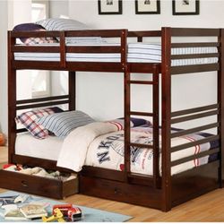 Twin Twin Bunk Bed Espresso Solid Wood Two Drawers Included🤩New$469Chula Vista, CA