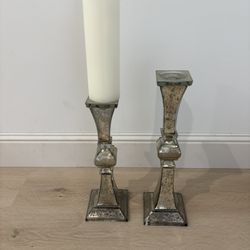 Statement Pair of Tall, Distressed Gold Baluster Pillar Candle Holders$10Carlsbad, CA