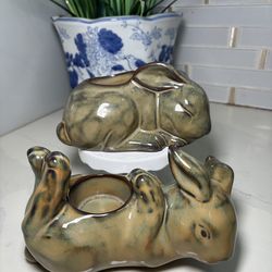 Set of PartyLite Baby Bunny Rabbit Tealight mottled green & brown Candle Holders$30Chula Vista, CA