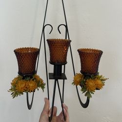 Mid-Century Modern Wall Hanging Rot Iron Candle Holder With Amber Glass Votive Basis Retro Vintage Collectible Rare Gothic Style$38San Diego, CA