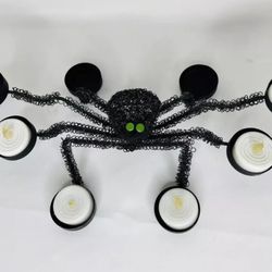 Halloween Black Spider Metal Wire Tea Light Candle Holder Green Eyes Home Decor$10San Diego, CA