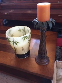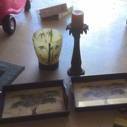 Palm tree trash can and candle$15San Diego, CA
