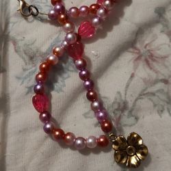 Pink Necklace Heart Beads Golden Flower Charm$5Chula Vista, CA