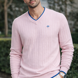 Adidas Originals Cashmere Knit Sweater Pink Blue Trim V-Neck Men’s Size L EUC$40Chula Vista, CA