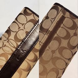 Coach Signature Canvas & Saffiano Leather Hobo Bag in brown and tan$100El Cajon, CA