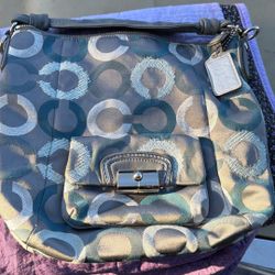 Coach Faye Shoulder Bag in denim and navy blue leather. $200Chula Vista, CA
