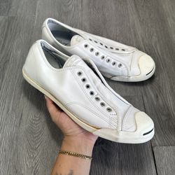 Sz 12 - Converse Jack Purcell Shoes White Leather Low Slip On Laceless Sneakers$60Lemon Grove, CA