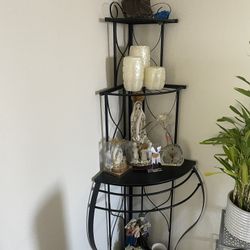 Vintage Metal Folding Corner Etagere shelf bookcase kitchen storage bakers rack plant Display stand Antique Style Retro Scroll Corner Shelf $55San Diego, CA