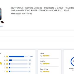 Gaming Desktop - iBuypower Intel Core i7-9700F @3.0 Ghz 16Gb RAM, GeForce GTX 1660 Super 1Tb HDD + 480Gb SSD$700Poway, CA