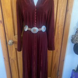 Vtg 90s Coldwater Creek Wine Button Front Stretch Velvet Maxi Western Dress Med$40Ramona, CA