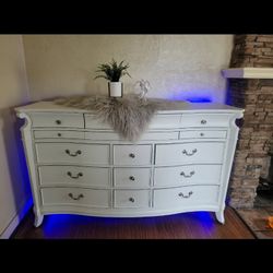 4 Pc Queen White Antique Bedroom Set $899San Diego, CA