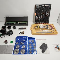Plier Set, Steel Hacksaw, Cutting Saws Disc. Drill Head Screwdriver, &E Doric Lettering Set. BLACK+DECKER