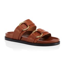 AQUA Womens Brown Cushioned Round Toe Slip On Leather Slide Sandals 6.5$30San Diego, CA