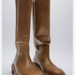 Zara Flat Knee Brown Tall Leather Boots lug $55San Diego, CA