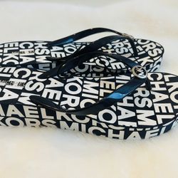 New! Michael Kors Signature Logo Flip Flops Navy/White Women’s Wedge Sandals/Sz:10$45San Diego, CA