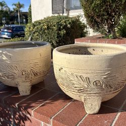Vintage Pair 2 Footed Terracotta Clay Medium Planter Pots Urns Flower Tree Succulent Garden Pot Cactus Herbs Retro $58San Diego, CA