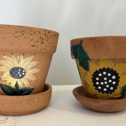 Vintage Set 2- Terracotta Sunflower Italy Planter Pot Garden Herb Succulents Flowers Hand Painted Collectible Flowers Vase Urn Small $18San Diego, CA