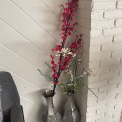 2 Gray Vases With Decorative Flowers $45El Cajon, CA