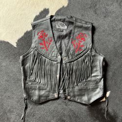 Vintage Leather Fringe Womens Vest With Red Roses. Large$70San Diego, CA
