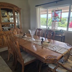 Carved Solid Wood Dining Set w/ 6 Chairs & China Cabinet$550Ramona, CA