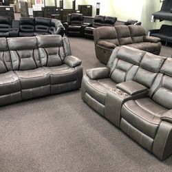 New Reclining Couch / Love Seat . Grey Leather . Free Delivery ! $2,200San Diego, CA