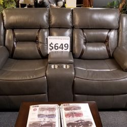 Brand New Grey Gel Leather Manual Reclining Loveseat With Cup Holder$599San Diego, CA