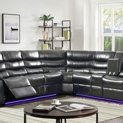 Brand new grey leather sectional with LED (64" × 59" Wedge × 73")$1,499San Diego, CA