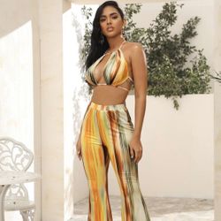 Fashion Nova Work of Art Tie Dye Halter Top & Flare Pants Two Piece Set Multicolor Size 6 Medium$30San Diego, CA