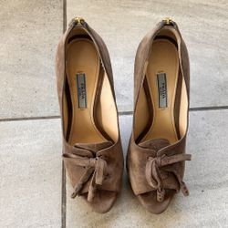 AUTHENTIC PRADA Suede Bow Peep-Toe Zip Back Pumps$225San Diego, CA