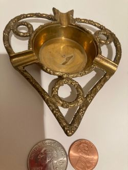 Vintage Metal Brass Ashtray, 4 1/2" x 4", Heart Shaped, Heavy Duty, Cigarettes, Cigars, Smoking, Table Decor, Shelf Display, This Can Be Shined Up$20Lakeside, CA