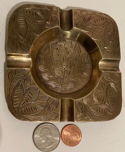 Vintage Metal Brass Ashtray, 4" x 4", Intricate Design, Heavy Duty, Cigarettes, Cigars, Smoking, Table Decor, Shelf Display, This Can Be Shined Up$25Lakeside, CA