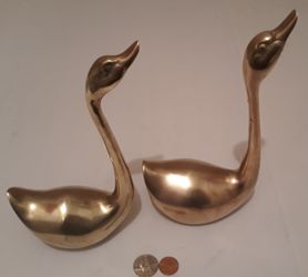 Vintage Set of 2 Metal Brass Swans, Ducks, Fowls, Birds, 9" Tall, Table Decor, Shelf Display. These Can Be Shined Up Even More$40Lakeside, CA