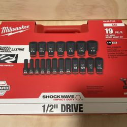 Milwaukee SHOCKWAVE 1/2 in. Drive SAE 6 Point Impact Socket Set$80San Diego, CA