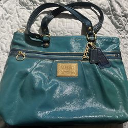 COACH Poppy Liquid Gloss Large Teal Shoulder Purse Handbag Tote$52San Diego, CA