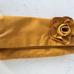 Steve Madden Mustard Yellow Faux Leather 3D Floral Accented Rose Foldover Clutch$30Chula Vista, CA