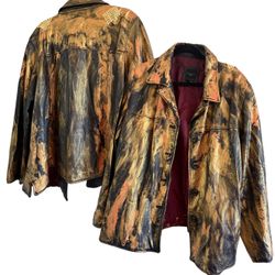 Custom art to wear 90s Colebrook & Co. metallic painted Multicolor soft calfskin leather Jacket plus size 3XL Elevate your style with this unique mu$125San Diego, CA