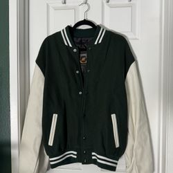 Rennoc Dark Green And White Leather Letterman Varsity Jacket$50La Mesa, CA