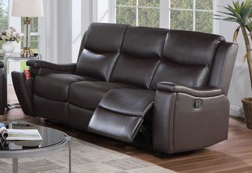 Brand new espresso faux leather manual reclining sofa with cup holders and USB (81" x 36" x 40"H)$550San Diego, CA