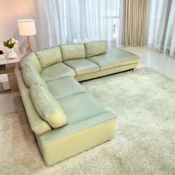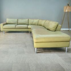 Chartreuse Green Leather 110” by 98” 2pc Mid Century Modern Sectional Sofa$595San Diego, CA