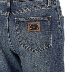 Dolce & Gabbana blue denim jeans with a brown leather logo patch$50San Diego, CA