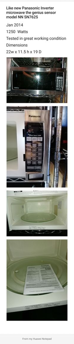 Super Clean Like New POWERFUL Panasonic Inverter 1200W The Genius Sensor Microwave Oven 20.5"W x 12"H x 16"D$99Lemon Grove, CA
