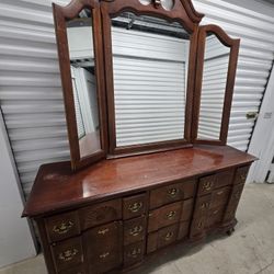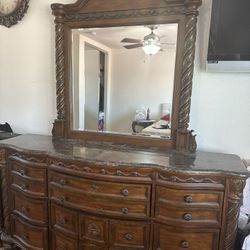 4 Pc Queen Antique Bedroom Set ( Bed Frame, Dresser, Mirror And One Nightstand) $899San Diego, CA