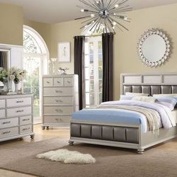 Brand New Silver Modern Queen Bedframe + Dresser + Mirror + Nightstand 4PCs Bedroom Set$1,499San Diego, CA