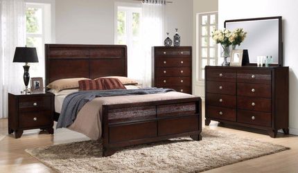 Brand new brown queen bedframe, dresser, mirror, nightstand$799San Diego, CA
